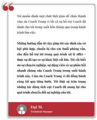 Tôi đã đồng hành và giúp đỡ rất nhiều học viên tự tin hơn trong mỗi buổi phỏng vấn và nhận offer từ các tập đoàn lớn.